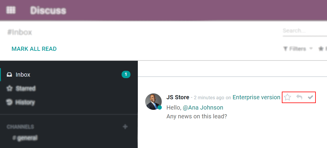 Odoo inbox giúp bạn trao đổi công việc dễ dàng hơn