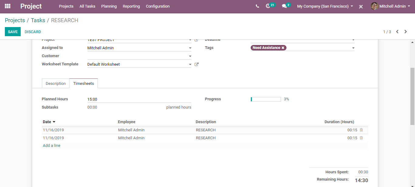 Cuối cùng, đối với những nhân viên làm việc từ xa, ứng dụng Odoo Project Management bao gồm tất cả các công cụ cần thiết để tránh quá thời hạn.